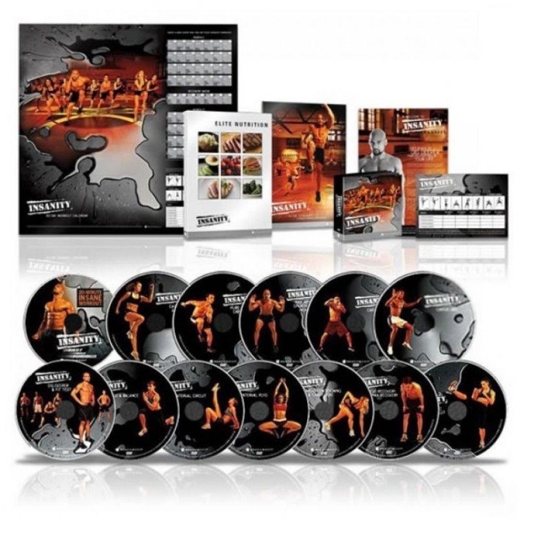 Insanity es un programa de acondicionamiento integral del cuerpo en 60 días. ¿Estás listo para la locura? Entonces tal vez completes el programa de ejercicios más difícil que haya salido en DVD. Tu entrenador personal Shaun T te llevará más allá de tus límites con 10 discos repletos de ejercicios pliométricos además de intervalos continuos de fuerza, potencia, resistencia y movimientos de entrenamiento para los abdominales y el centro del cuerpo. No se necesitan equipos ni pesas. Solo la voluntad para conseguir el cuerpo más duro que hayas tenido en tu vida. El método detrás de la locura El secreto de estos resultados de locura: MÁXIMO Entrenamiento a Intervalos. Shaun T tomó el entrenamiento a intervalos tradicional y le dio la vuelta: realizas sesiones largas de ejercicios de máxima intensidad con periodos cortos de descanso. Cada ejercicio te desafía constantemente a medida que cambias entre intervalos aeróbicos y anaeróbicos realizados a tu límite MÁXIMO. Los resultados: quema hasta 1,000 calorías por hora y consigue un cuerpo de locura en solo 60 días.