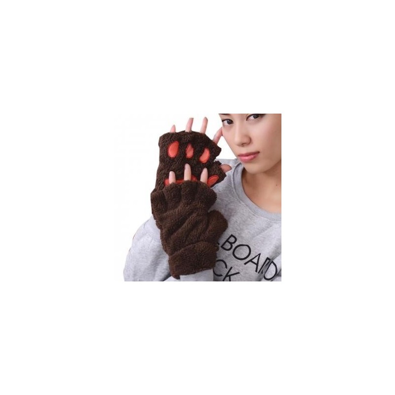 Mujeres Fluffy Bear gato de la felpa de la pata Garra Guante-novedad de Halloween Toweling medios guantes cubierto Marrón oscur Ver más grande