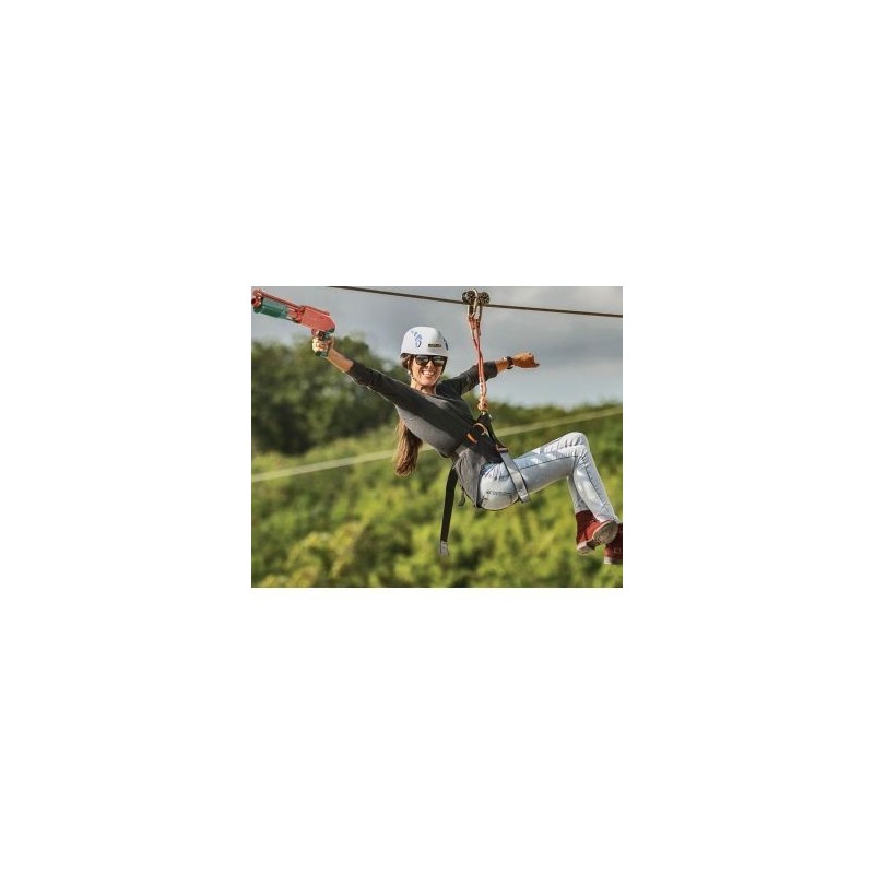 Lánzate a la vida en tirolesa, dispara bolas de pintura a toda velocidad mientras te deslizas a miles de metros de altura. También podrás manejar el vehículo más veloz 4x4 desafiando el tiempo y la adrenalina. Al llegar tendrás 15 minutos para registrarte, después recibirás una clase de inducción donde se explicarán las reglas de seguridad y dará comienzo esta increíble y extrema la experiencia Terminando la actividad, te estaremos esperando con bebidas y snacks para concluir la experiencia de la mejor forma, ¡panza llena, corazón contento!