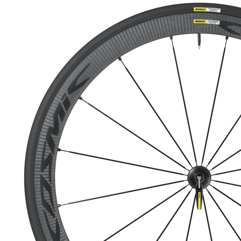 El Set de Ruedas Mavic Cosmic Carbon 40 Elite 2016 M23 definitivamente es ese en el que puedes confiar con los ojos cerrados, gracias a la capacidad de sus llantas TgMax para erradicar el calor; con tan solo 1545 gramos de peso (par sin neumáticos), el Set de Ruedas Mavic Cosmic Carbon 40 Elite 2016 M23 se encuentra en el top de los más ligeros, característica que lo posiciona entre aquellos con mayor dinamismo en la rodadura. De igual forma, con sus llantas en fibra de carbono 3K, y sus neumáticos Yksion Pro GripLink (delante) y PowerLink (detrás), el Set de Ruedas Mavic Cosmic Carbon 40 Elite 2016 M23 se convierte en el medio perfecto para rodar con la toda la agilidad y potencia que deseas.