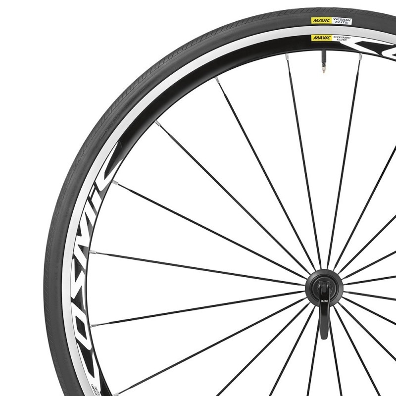 Cuando compites en carretera o triatlón y dicides gastar un poco menos, este set de ruedas con tan solo 1770 gramos de peso (par sin neumáticos), llanta aero de 30 mm, y neumáticos Yksion Comp de resistencia baja, es ideal. Deja que el aluminio 6106 y los rodamientos sellados del Set de Ruedas Mavic Cosmic Elite 2016 M23 te conquisten y llega más allá de lo que jamás hayas imaginado